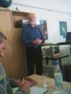Wolfgang Quester referierte über die Maximumsbestimmung von RR- Lyrae-Sternen, speziell bei TU UMa. Die CCD-Lichtkurve kann nach verschiedenen mathematischen bzw. geometrischen Methoden ausgewertet werden, wobei die Maximumswerte um mehrere Minuten voneinander abweichen. Zuweilen treten als besondere Schwierigkeit auch Doppelmaxima auf. Daher ist auf ein international einheitliches Auswerteverfahren Wert zu legen. Die erfolgversprechende Verwendung von mathematischen Schablonen, die jeweils über das beobachtete Maximum gelegt werden, wurde am Beispiel von TU UMa erläutert.